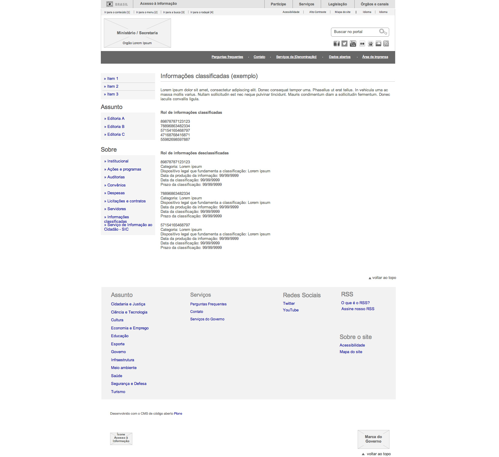 Nesta seção são divulgados o rol das informações classificadas em cada grau de sigilo e o rol das informações desclassificadas nos últimos doze meses no âmbito do [nome do órgão ou entidade].